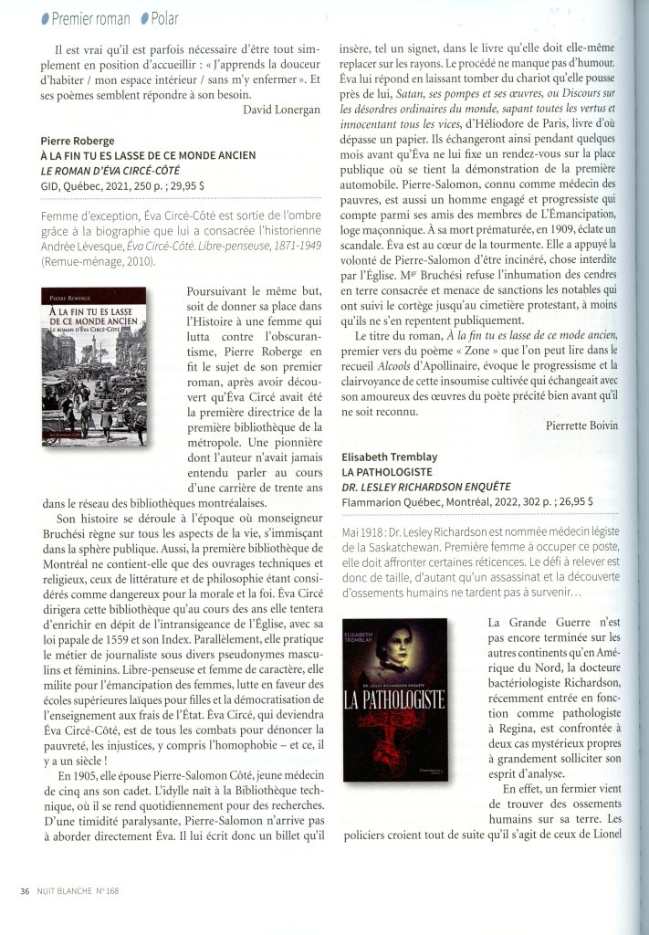Recension dans Nuit blanche