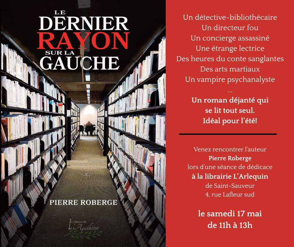 Je serai à la librairie L’Arlequin, samedi le17 mai, de 11h à 13h pour une séance de signature